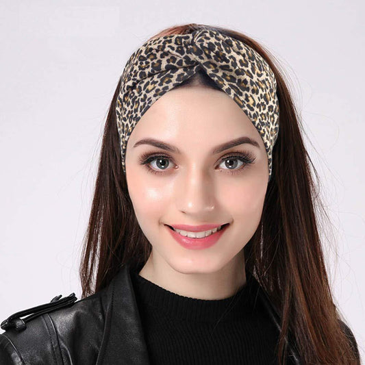 [Gift]Women Headbands Headwrap Yoga Workout Sport Thick Head Bands Stretchy Hair Bands Solid Color (M, Leopard)