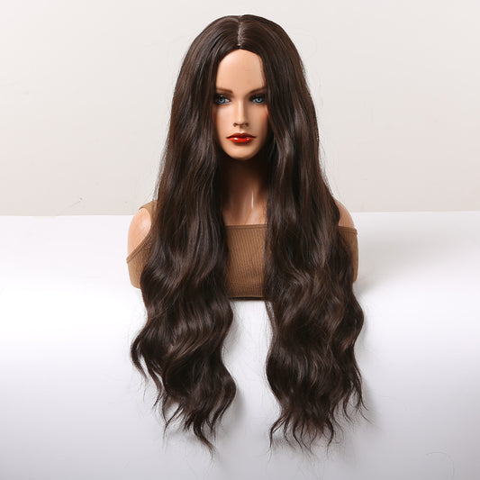 26Inch Long Dark Brown Wavy Wig Middle Part Synthetic Heat Resistant Wig LC5036-1